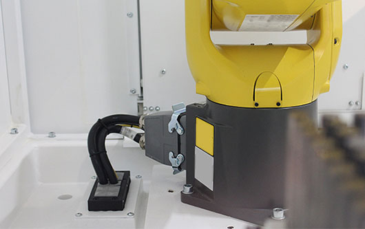KEL-ER cable entry frames IP66: Routing of a heavy multi-pin industrial connector into the cell of a 6-axis robot.
