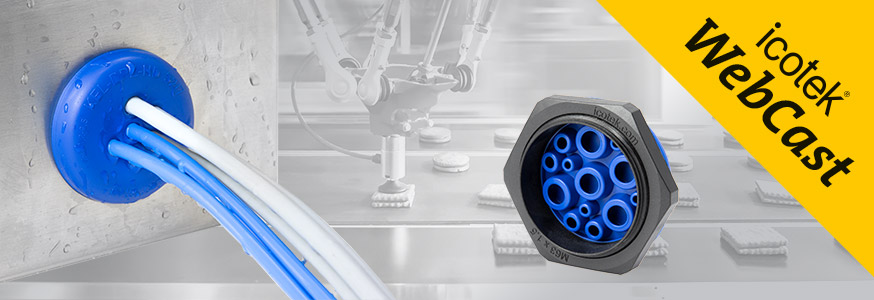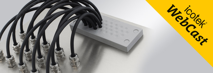 Wir erkl?ren die Basics! Mit der patentierten teilbaren Kabeleinführung von icotek lassen sich eine gro?e Anzahl an Leitungen mit vormontierten Steckern oder ohne Stecker sehr schnell und sicher in Geh?use oder Schaltschr?nke sowie Maschinen einführen, mit bis zu IP66 / IP68 und UL type 4X abdichten und gleichzeitig gegen Zug entlasten. Besonders praktisch ist eine solche Kabeleinführung zum Beispiel im Wartungsfall oder bei Nachrüstungen. Das WebCast wird einen besonderen Fokus auf die Tüllenvielfalt und deren Montage legen. Hier m?chten wir Ihnen eine übersicht über kleine, gro?e, ein- und mehrfachgeschlitzte Tüllen, aber auch unterschiedlichste flexible Mehrbereichstüllen geben.