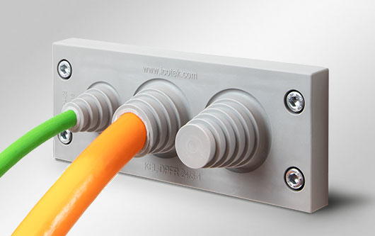 Die Kabeldurchführungsplatten KEL-DPFR erm?glichen es, mehrere Leitungen mit unterschiedlichen Durchmessern von 3 bis 28 mm einzuführen und gem?? IP66 abzudichten. Sie eignen sich insbesondere, wenn der Kabeldurchmesser einzelner Leitungen bei der Endverdrahtung, z.B. auf der Baustelle, nicht genau bekannt ist.