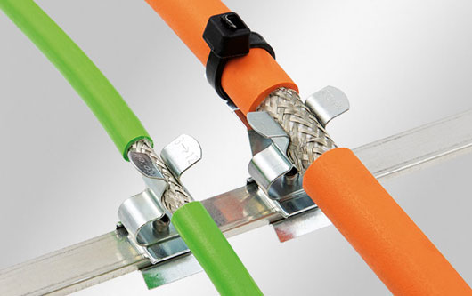 Mehr InfosEMV Schirmklammern auf Masseb?ndern mit und ohne integrierte Kabelfixierung