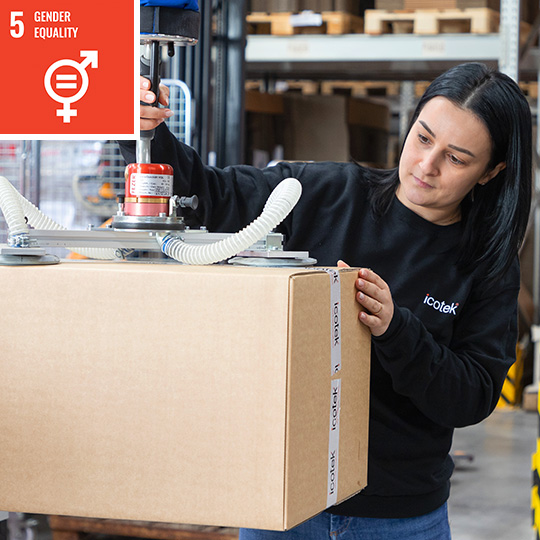 The proportion of women (47%) and men (53%) employed at icotek is almost equal (2024).